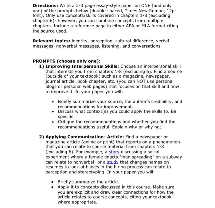Solved Directions Write A 2 3 Page Essay Style Paper On One Chegg Com